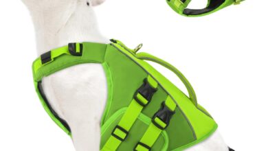 Queenmore Dog Life Jacket, M Life Jacket for Medium Dogs, Ripstop Life Saver with Rescue Handle, Dog Life Jacket (Green, M)