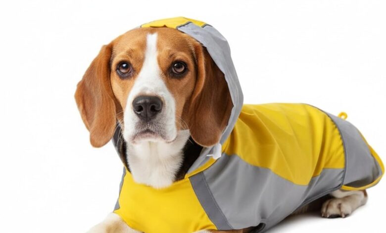 Design: the dog rain jacket design combines a covering hood, an adjustable drawstring at the hem and an open leg construction: the hood protects the head and ear areas, the drawstring adapts individually, and the leg opening ensures freedom of movement without restrictions