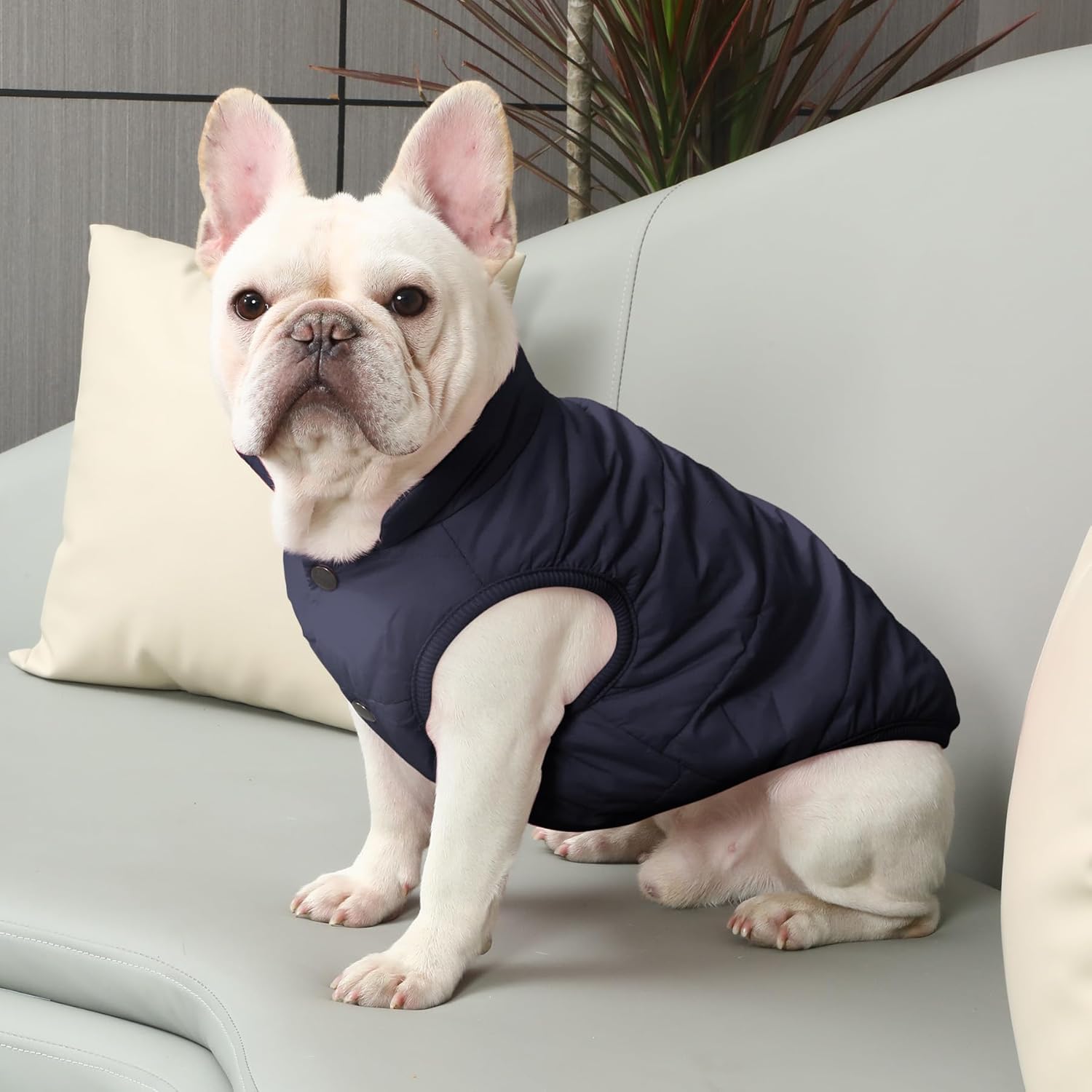 Dog jacket with heavy duty stitching. Thanks to its metal press studs, it is easy to put on and take off.