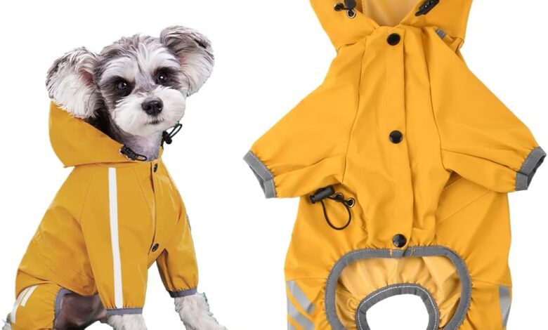 Amexo Raincoat for Dogs Dog Raincoat Waterproof with Collar Hole Adjustable 4 Legs Pet Poncho Dog Raincoat with Hood Reflective Stripes for Small Medium Dogs (M)