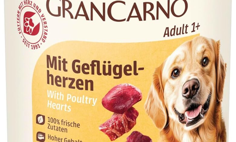 animonda GranCarno Adult Dog Food, Wet Food for Adult Dogs, with Poultry Hearts, 6 x 400 g