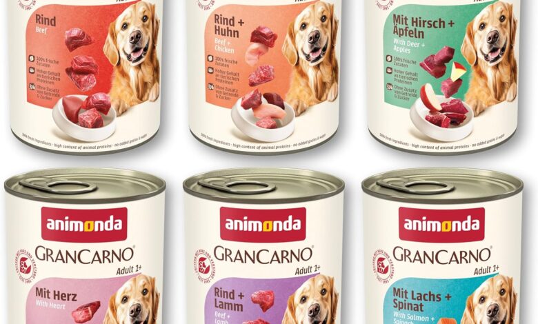 Practical box contents: animonda Grancarno hearty variation, high-quality wet food for adult dogs, dog food without cereals, 100% fresh ingredients, 6 x 400 g