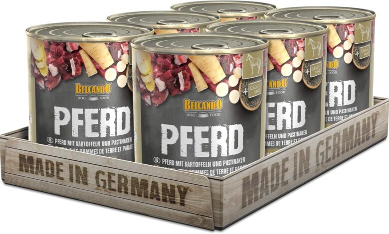 BELCANDO Wet Food for Dogs, Horse with Potato, 6 x 800 g Tin, Dog Food Wet, for All Breeds, Made in Germany