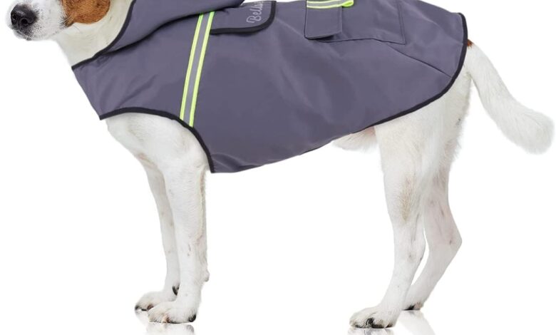 Waterproof material: The dog coat is ideal for protecting your four-legged friend from the weather during all outdoor leisure activities. Polyester with PVC (polyvinyl chloride) coating and mesh lining is breathable, waterproof, reflective and adjustable. Thanks to the smoothly adjustable neck and chest circumference, it is comfortable for the dog to wear.