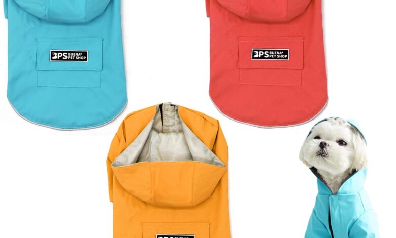BPS BPS-9700AZ Waterproof Pet Dog Rain Jacket with Hood Pocket for Small Medium Large Dogs 100% Polyester (S, Blue)