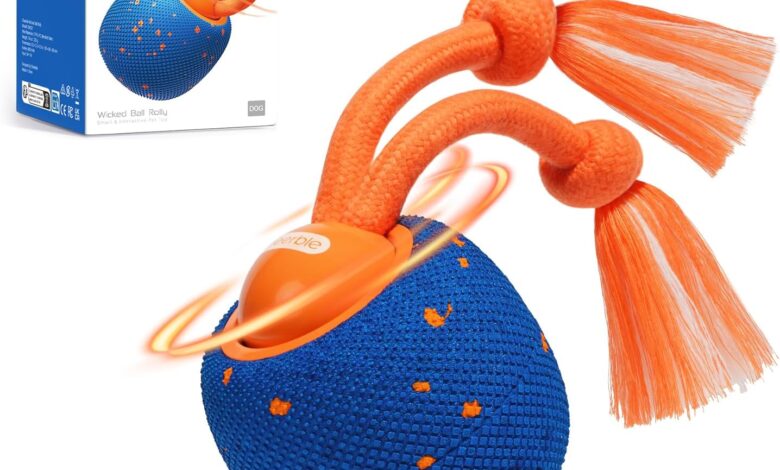 Cheerble Interactive Dog Ball – Wicked Ball Rolly with Rope & Barking, Intelligent Interactive Dog Toy with 3 Play Modes, E-TPU, USB-C Rechargeable, Suitable for Small to Large Dogs, Blue