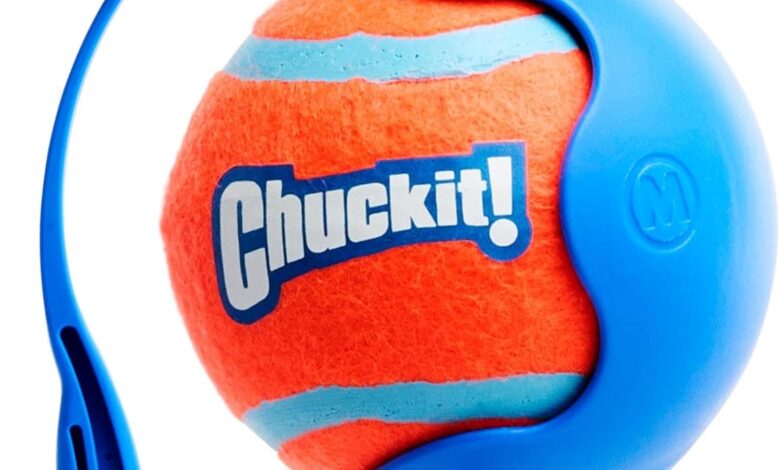 Chuckit! Sports dog ball pocket thrower; Hands Free Pick Up and Throw Play; Tennis ball and thrower toys; Different colors; Medium sphere; 30cm long