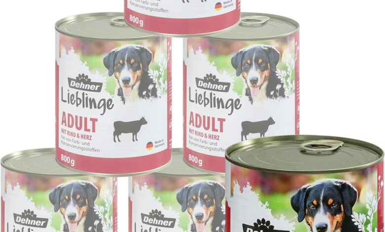 Dehner Lieblinge Adult Dog Food, Wet Food, with Beef and Heart, Many Pieces of Meat, with Trace Elements, Calcium, No Colourants and Preservatives, Immune Support, 6 x 800 g