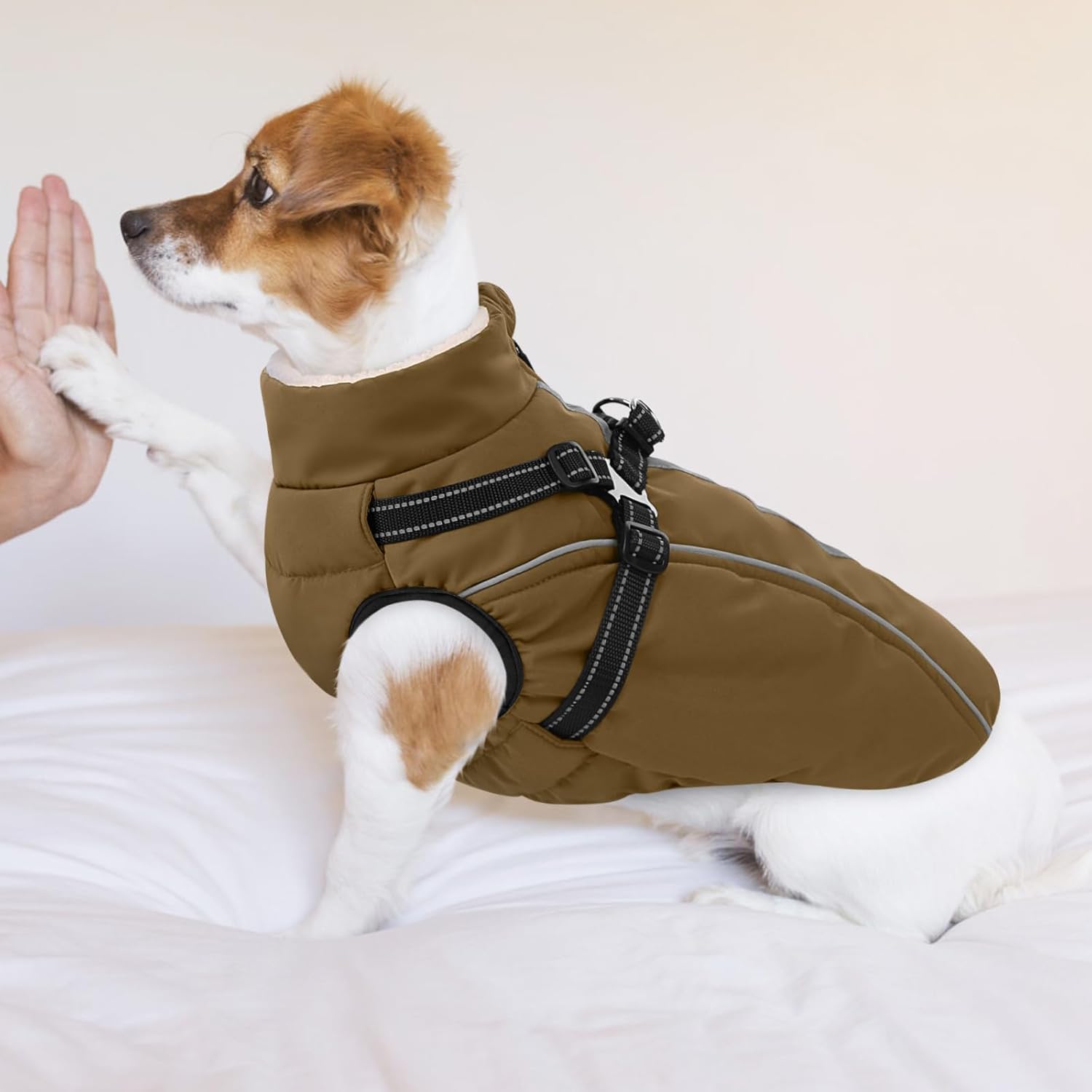 Dog Coat, Dog Jacket, Warm Winter Coat with Zip, Windproof & Windproof with Reflective Strips and Chest Strap for Small, Medium, Large Dogs, Brown, S