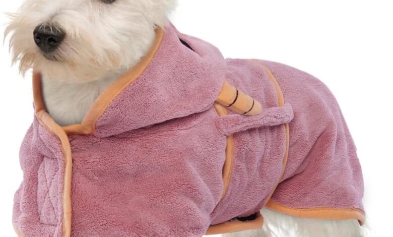 OUOBOB Super absorbent pet bathrobe is available in 6 sizes for small, medium and large dogs. Before making a selection, please measure your pet’s size and compare it with the size chart to make your choice.