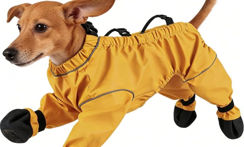 Dog Rain Suit with Boots – Waterproof Dirt Protection Jumpsuit for Dogs, Non-Slip Soles & Straps, Full Body Protection for Rain, Mud & Cold (for Small & Medium Breeds) (L)