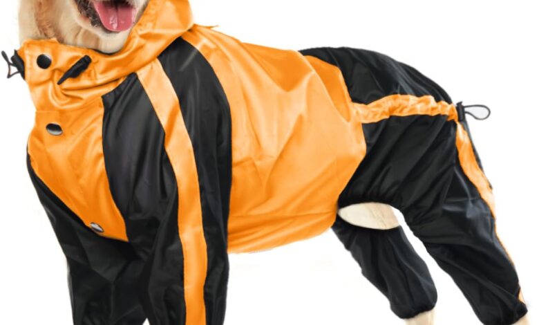 Dog Raincoat Waterproof for Large Dogs Lightweight Rain Jacket Adjustable 4 Legs Pet Poncho Hooded Snowproof Dog Vest Rainwear Clothes with Leash Hole