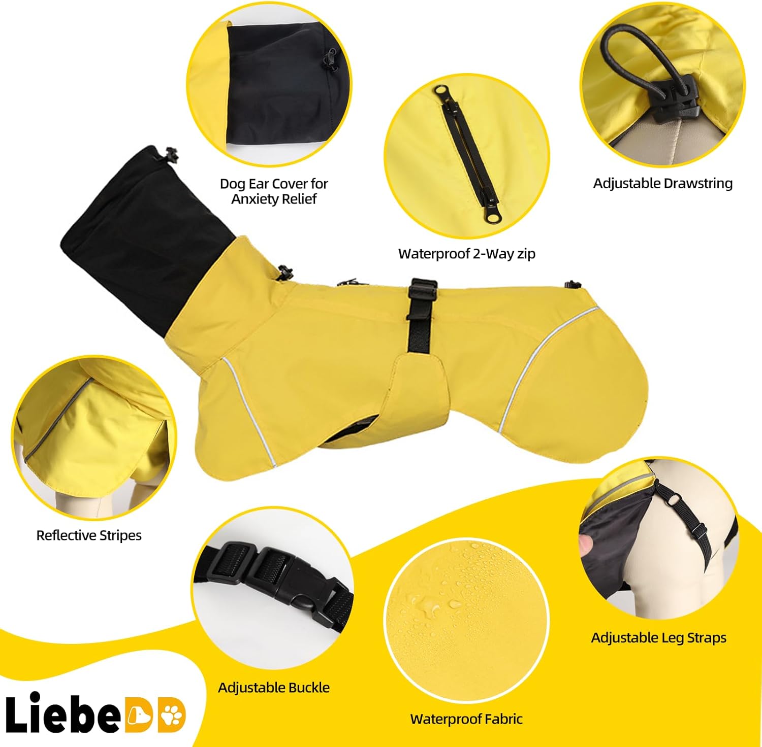 Waterproof design: the LiebeDD rain jacket for dogs is fully waterproof. Even the zip for the opening is waterproof, so your dog stays dry and comfortable even on rainy days. Built-in rainproof comfort earmuffs provide extra protection and comfort.