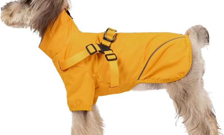 Dog Raincoat with Zipper, Waterproof Reflective Rain Jacket for Puppies, Raincoat with Harness for Small and Medium Dogs (Yellow, XL)