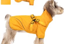 Made from polyester material, it offers protection during autumn showers whilst maintaining comfort. It is made of polyester and offers protection in autumn rain showers without compromising comfort. This waterproof rain jacket with double D-ring features convenient harness integration, simply attach the dog leash directly to it. The waterproof rain jacket with double D-ring can be easily attached to the harness – simply attach the dog lead directly to it. The classic style comes with adjustable straps to ensure a proper the classic style is equipped with adjustable straps that ensure a good fit. The practical zip design makes it easy to put on and take off, while the reflective elements add an extra safety feature for those essential walks in challenging weather. The practical zip makes it easy to put on and take off, while the reflective elements provide additional safety when walking in bad weather.
