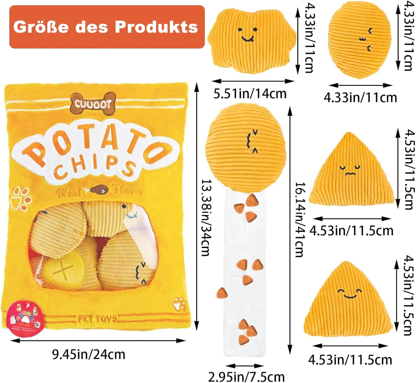 Dog Toy Small Dogs, Crinkly Squeaky Dog Toy, Interactive Plush Dog Toy, Puzzle and Enrichment Toy for Small, Medium and Large Dogs (Potato-chips-01)