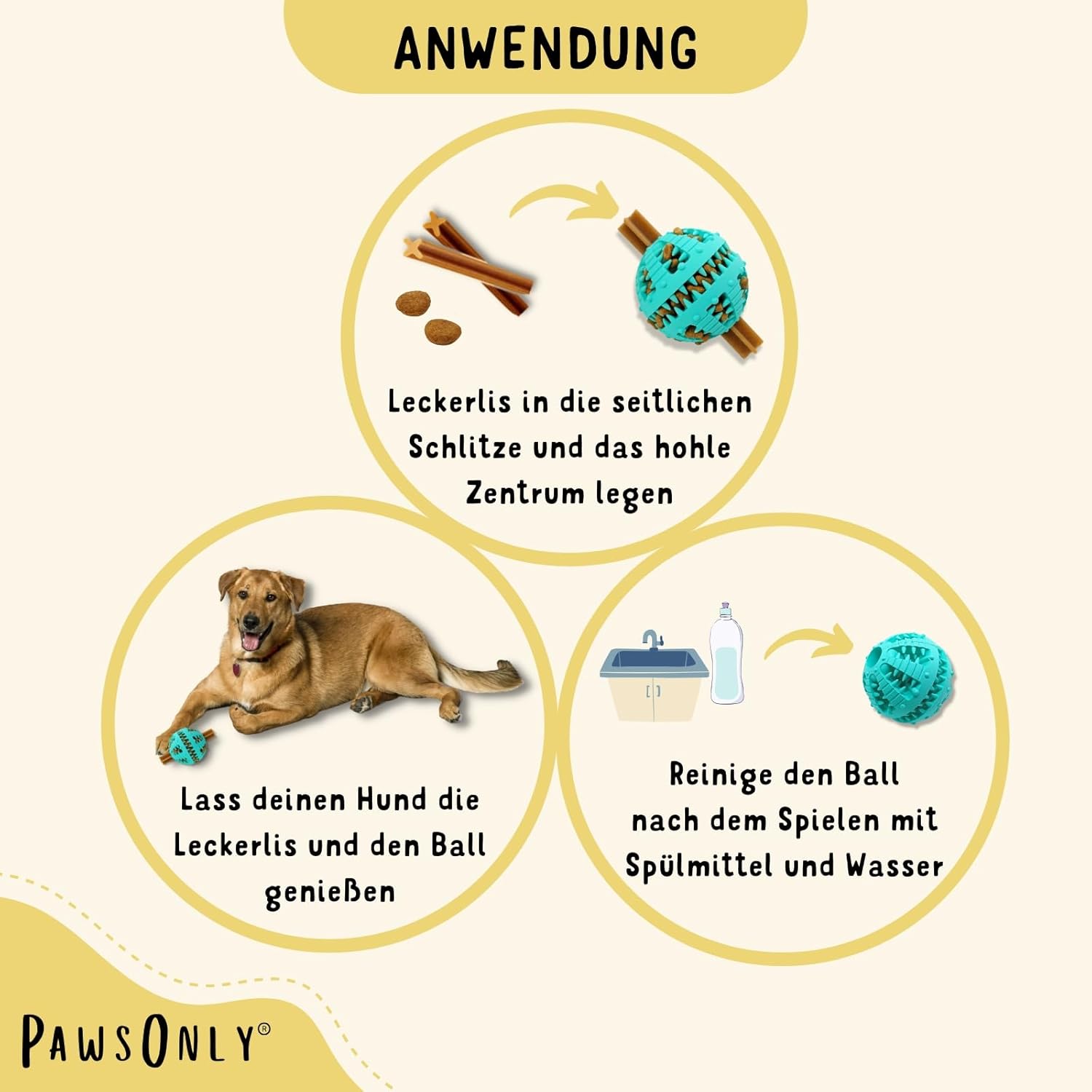 Premium natural rubber – The PawsOnly lick ball is made of flexible natural rubber – a robust, safe rubber ball that is soft in the mouth and protects the dog bite. It is free from harmful substances and ideal for everyday fun with snacks.