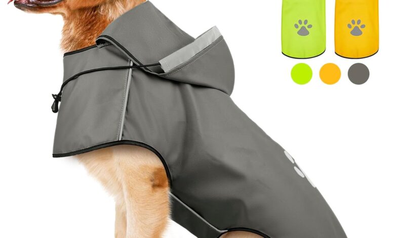 DQGHQME Rain Jacket Pet Raincoat with Hood, Adjustable Dog Raincoat, Dog Coat Waterproof, Reflective Rain Cape, Rain Jackets for Small, Medium, Large Dogs, XL