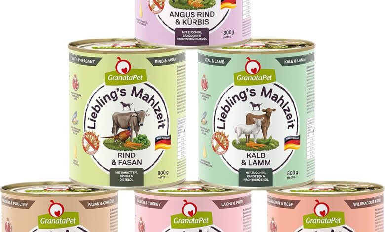 GranataPet Liebling’s Mahlzeit Multipack 2, Wet Food for Dogs in Trial Pack, Complete Food without Grains, Dog Food with High Meat Content and High-Quality Oils, 6 x 800 g