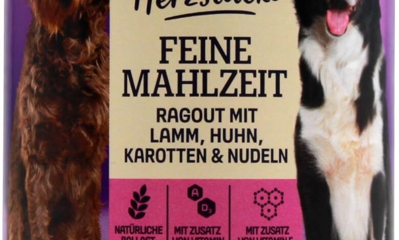 Herzstücke Fine Meal Ragout with Lamb, Chicken, Carrots & Pasta, Dog Food, Pack of 12 (12 x 400 g)