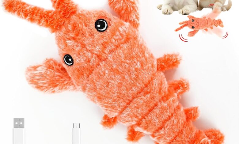 Interactive pet toy: The wobbly lobster dog toy brings joy to your dog through vivid sounds and jumping movements. It can be charged via the USB port and has three jump modes in which your pet can chase and run with the bouncing lobster, providing interactive fun that stimulates your pet and makes them happy.
