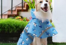 Stilvoller, lässiger Look: Die Haustier-Regenjacke kombiniert Mode mit Funktion und bietet Komfort, der die Niedlichkeit und den Stil Ihres Haustieres auf Ausflügen im Freien unterstreicht.