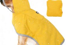 Allow Milford It is similar to the classic Frisian mink and is just as practical and functional as the „human variant“. The special needs of four-legged friends were taken into account in the design of Milford. Elastic bands on the rear legs ensure a perfect fit of the lightweight coat, even in strong gusts of wind. The Milford dog raincoat is closed in no time at all and individually with a wide Velcro strap. This is closed on the back and can be adjusted quickly. In addition to an opening for the D-ring of a collar, the coat is also ideal for „harness wearers“ thanks to the waterproof and individually adjustable two-way zip. Caring for the Milford coat is very simple: With a soft, damp cloth, any dirt can be easily wiped off, unless the rain has already taken over in a completely natural way. Washable at 30°C.