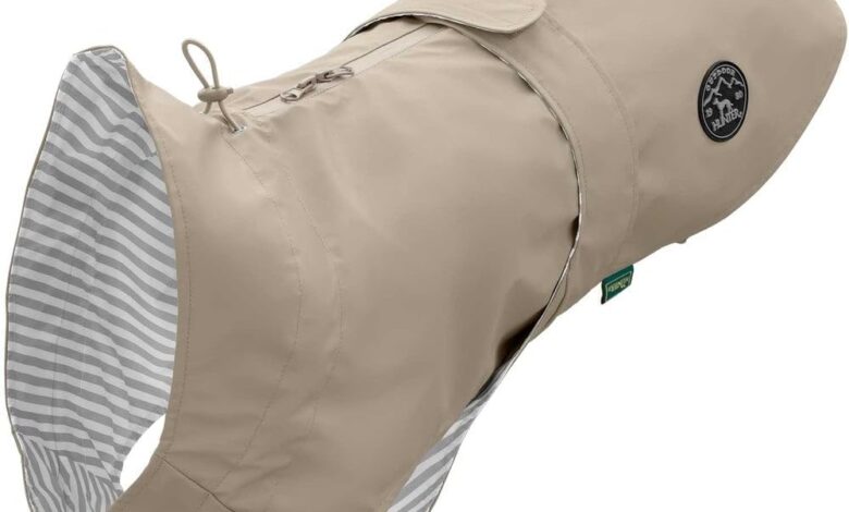 Allow Milford It is similar to the classic Frisian mink and is just as practical and functional as the „human variant“. The special needs of four-legged friends were taken into account in the design of Milford. Elastic bands on the rear legs ensure a perfect fit of the lightweight coat, even in strong gusts of wind. The Milford dog raincoat is closed in no time at all and individually with a wide Velcro strap. This is closed on the back and can be adjusted quickly. In addition to an opening for the D-ring of a collar, the coat is also ideal for „harness wearers“ thanks to the waterproof and individually adjustable two-way zip. Caring for the Milford coat is very simple: With a soft, damp cloth, any dirt can be easily wiped off, unless the rain has already taken over in a completely natural way. Washable at 30°C.
