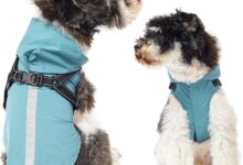 Halte deinen pelzigen Freund mit unserem erstklassigen Hunderegenmantel kuschelig und trocken. Er wurde für schlechtes Wetter entwickelt und ist vollständig wetterfest und isoliert, sodass dein Hund bei kühlen, feuchten Ausflügen warm bleibt. Das umfassende Design deckt den Rücken, die Brust und den Bauch ab und bietet optimale Wärme bei gleichzeitiger Bewegungsfreiheit. Der verstellbare Brustgurt sorgt für einen guten Sitz und reflektierende Streifen verbessern für mehr Sicherheit