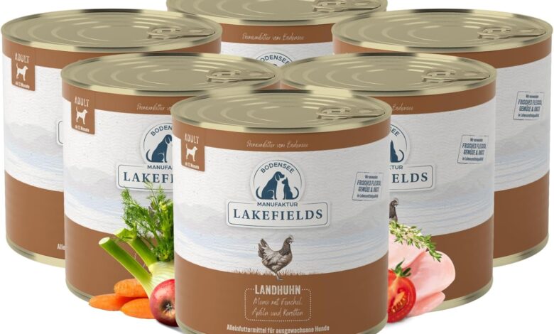 Lakefields Premium Wet Dog Food, Chicken 61%, 6 x 800 g, Grain-Free Wet Food for Dogs, Natural Food Grade Ingredients, Carrots, Potatoes & Apple, Gently Cooked