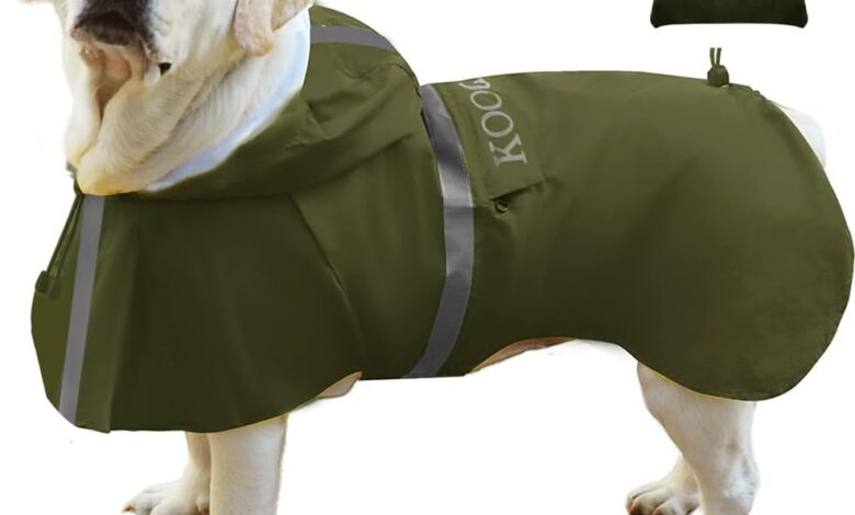 Large Dog Rain Jackets with Hood, Dog Raincoat with Reflective Safety Strips, Waterproof Dog Mackintosh, Suitable for Medium and Large (Green, 5XL)