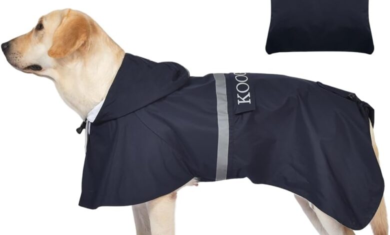 Large Dog Rain Jackets with Hood, Dog Raincoat with Reflective Safety Strips, Waterproof Dog Mackintosh, Suitable for Medium and Large (Navy Blue, 6XL)