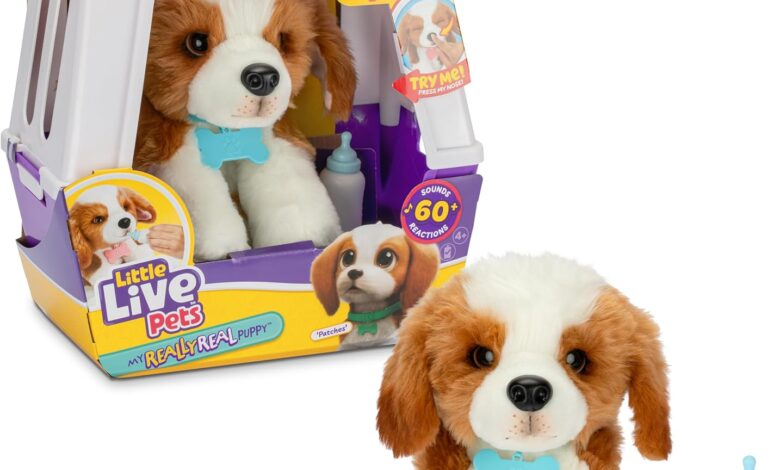 Little Live Pets My Really Real Puppy – Patches; Interactive Puppy; 60+ Sounds/Reactions; Realistic Look; 1 out of 72 Variants; Playset with Transport Box; Batteries Included; Ages 5+