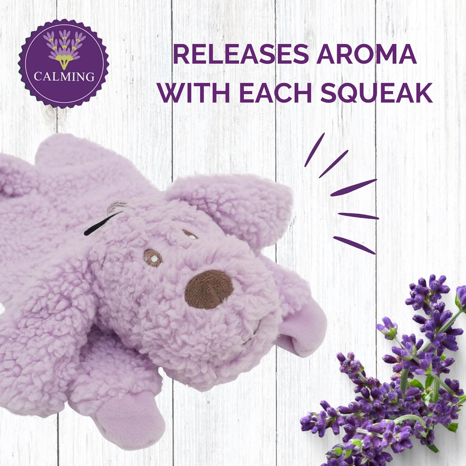Aroma Dog is a range of soft plush toys for dogs with internal squeaker that release the lavender scent through a patented technology. Made with 100% therapeutic lavender essential oil.