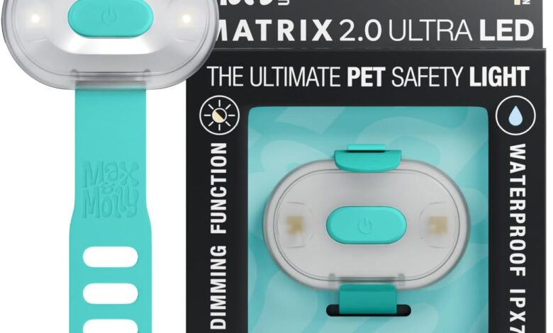 Max & Molly Matrix 2.0 Ultra LED, Dog Light for Harness, Lead & Collar, Turquoise, Waterproof, USB Rechargeable, Dog Lamp LED, Dog Light Pendant for More Safety at Night