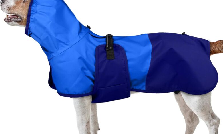 Hunderegenmantel mit Kapuze: Die verstellbare, wasserdichte Hundejacke mit Kapuze schützt vor Wind und Regen in Ohren und Nacken.