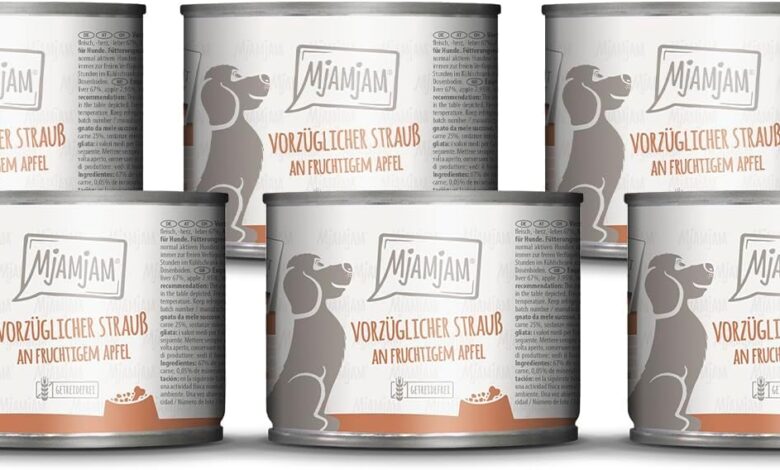 MjAMjAM Premium Wet Food for Dogs – Excellent Bouquet of Fruity Apple, Pack of 6 (6 x 200 g), Grain-Free with Extra Meat