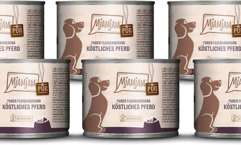 MjAMjAM Premium Wet Food for Dogs, Pure Meat Enjoyment, Delicious Pure Horse, Pack of 6 (6 x 200 g), Grain-Free with Extra Meat