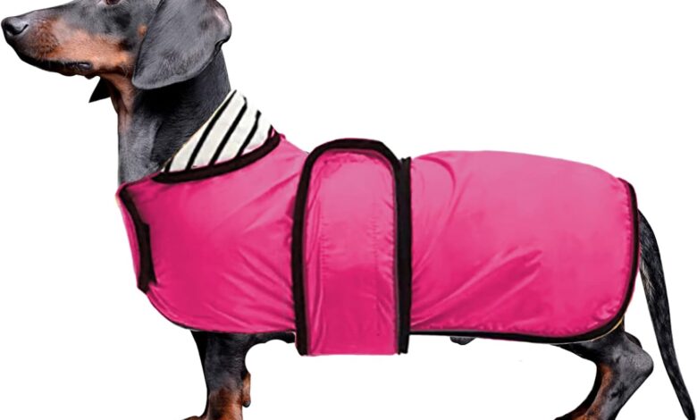 1. High quality waterproof dog raincoat – with special contour shape, suitable for dachshunds and similar breeds.