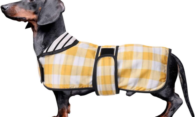 1. High quality waterproof dog raincoat – with special contour shape, suitable for dachshunds and similar breeds.