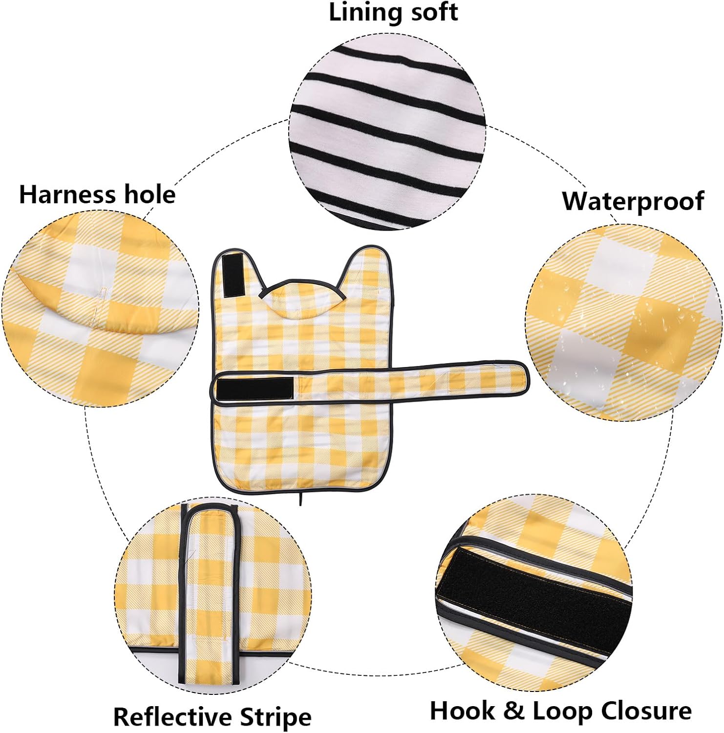 MOREZI Dog Raincoat with Reflective Stripes, Rain/Waterproof, Adjustable Vest, Suitable for Small and Medium Dogs such as Dachshund Yellow Checked M