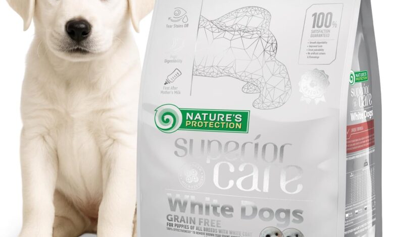Nature’s Protection Superior Care Dry Grain-Free Dog Food – Hypoallergenic Puppy Food with Salmon for White Dogs of All Breeds, Dry Food for Puppies, 1.5 kg