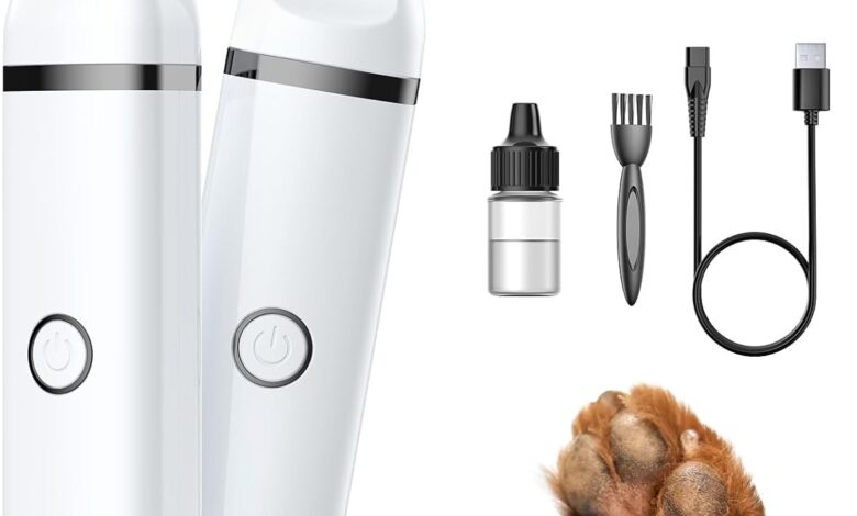 oneisall Paw Trimmer for Dogs with Double Blades, 2-Speed Clipper Dog Paws Quiet Dog Clipper for Paws, Eyes, Ears, Face, Body (White)