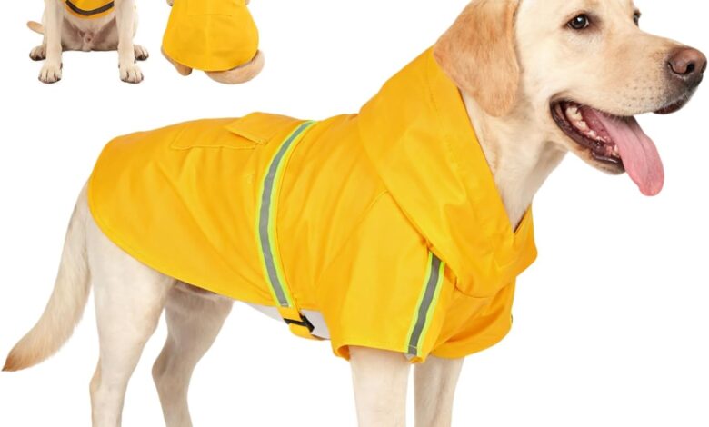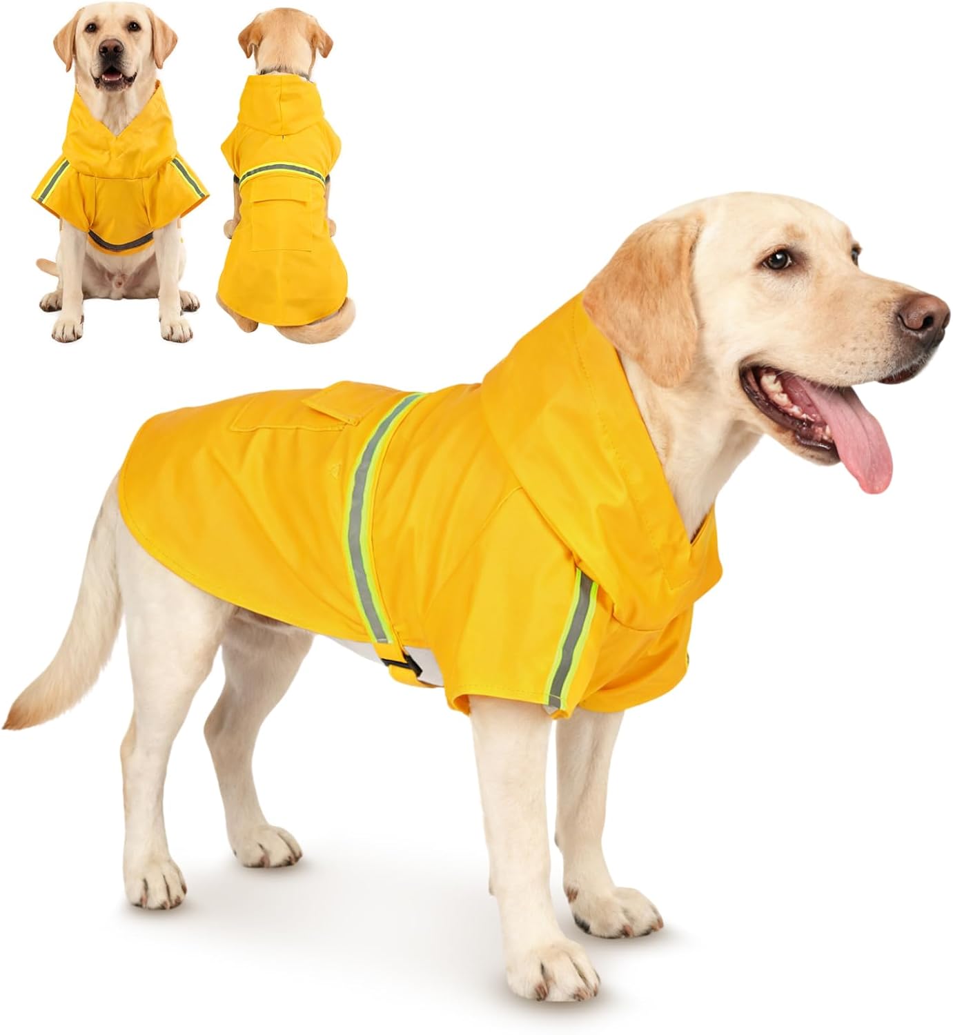 OSDUE Dog Raincoat, Waterproof Dog Raincoat with Reflective Stripes, Raincoat with Hood, for Small to Large Dogs, Ergonomic Fit, Adjustable, 3XL, Yellow
