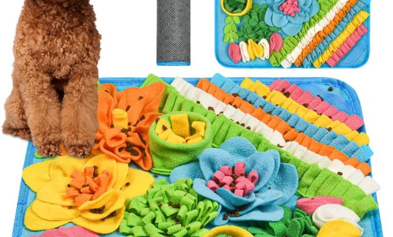 Unique and fun design: this sniffing mat for dogs features a bright floral pattern with a green plant motif. Flower shapes serve as hiding places for food designs and make foraging games more attractive. This mat is designed to hide dog treats and helps relieve stress, allows your dog to use their sense of smell and burn energy, and can also help reduce your dog’s weight.