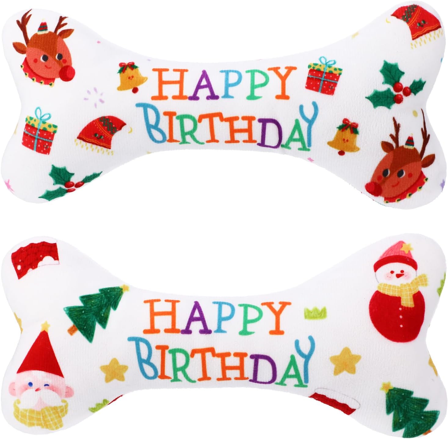 Pack of 2 Chritams Dog Birthday, Pet Dog Birthday Bone Toy Plush Dog Toy Birthday Cartilage Toy for Christmas Small and Medium Dogs