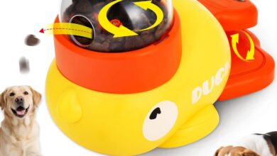Duck Shape Dog Slow Feeder Toy, Interactive Snack Intelligence Toy for Cats & Dogs – Feeder Against Slings, Easy to Clean with 3 Interchangeable Food Lids