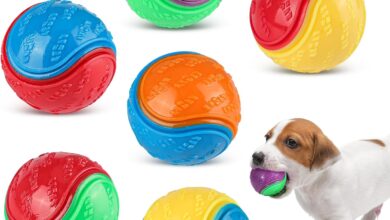 Price: (as of – Details) Product description: 6 Pack Squeaky Dog Ball, Dog Toy Teeth Cleaning, Pet Training Ball, Puppy…