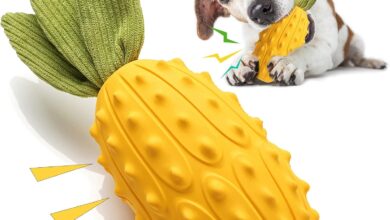 Dog Toy, Chew Toy Dog Almost Indestructible, Squeaky Dog Toy for Puppies Medium and Large, Rubber Horned Melon Dog Toys