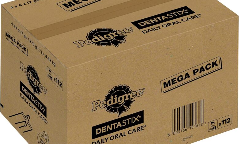 Pedigree DentaStix Daily Oral Care dental care snack for large dogs – dog treats with chicken & beef flavor for every day – 1 x 112 pieces (packaging may vary)